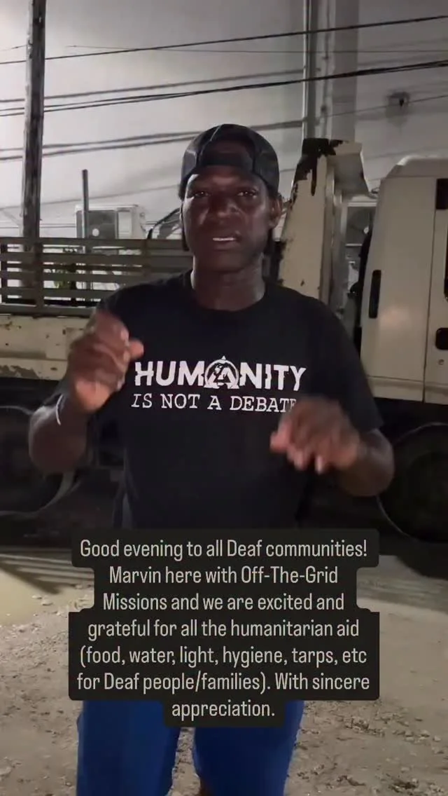 Off-The-Grid Missions (OTG) is a global humanitarian aid organization filling the gap in disaster-response by providing Deaf and Hard-of-Hearing people with critical life-saving resources in high-risk and disaster-stricken regions around the world.